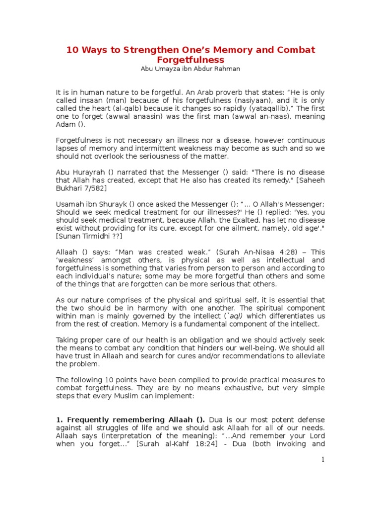 To Remember Forgotten Things And For Improving Memory Islam My Guide